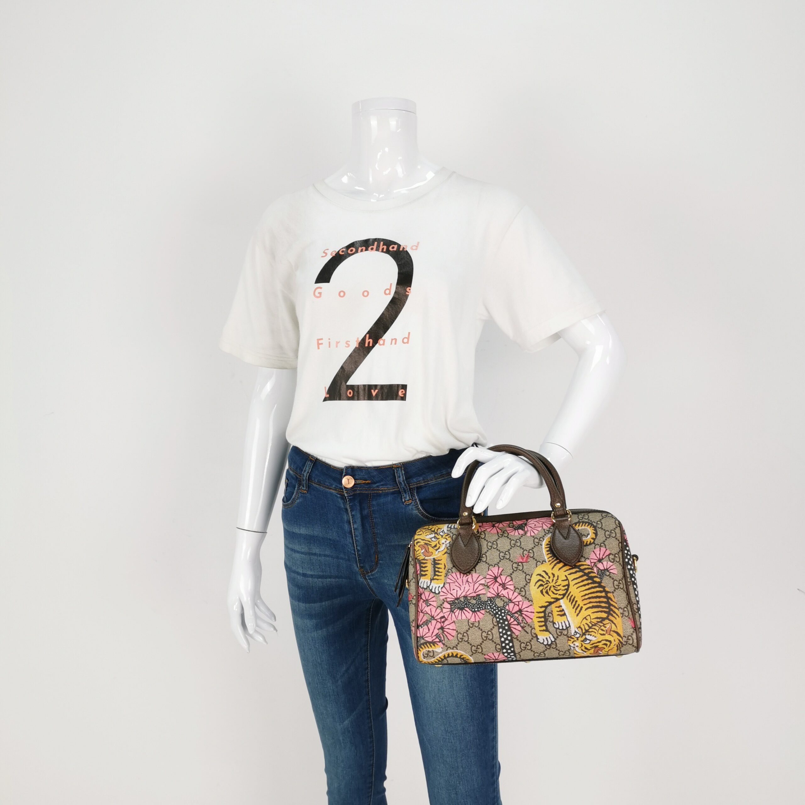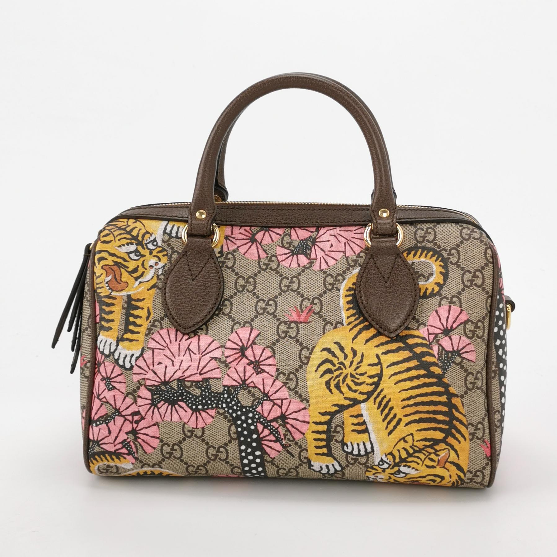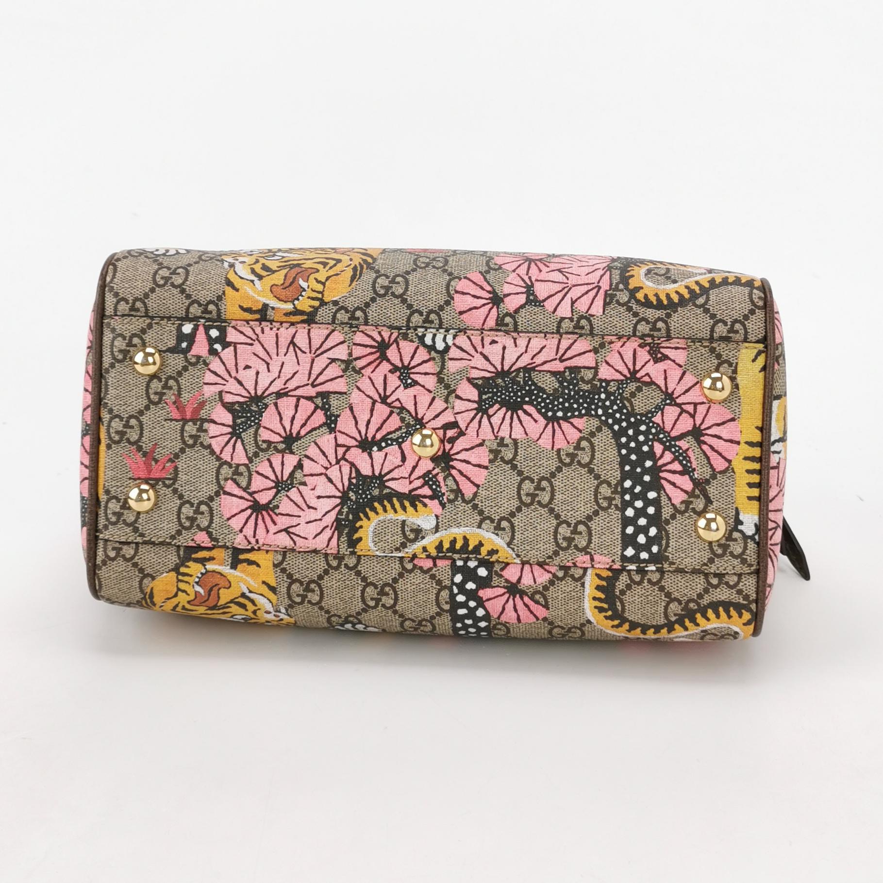 Gucci GG Supreme Boston Bag features the iconic tiger & floral print -a true collector’s piece that turns heads everywhere you go