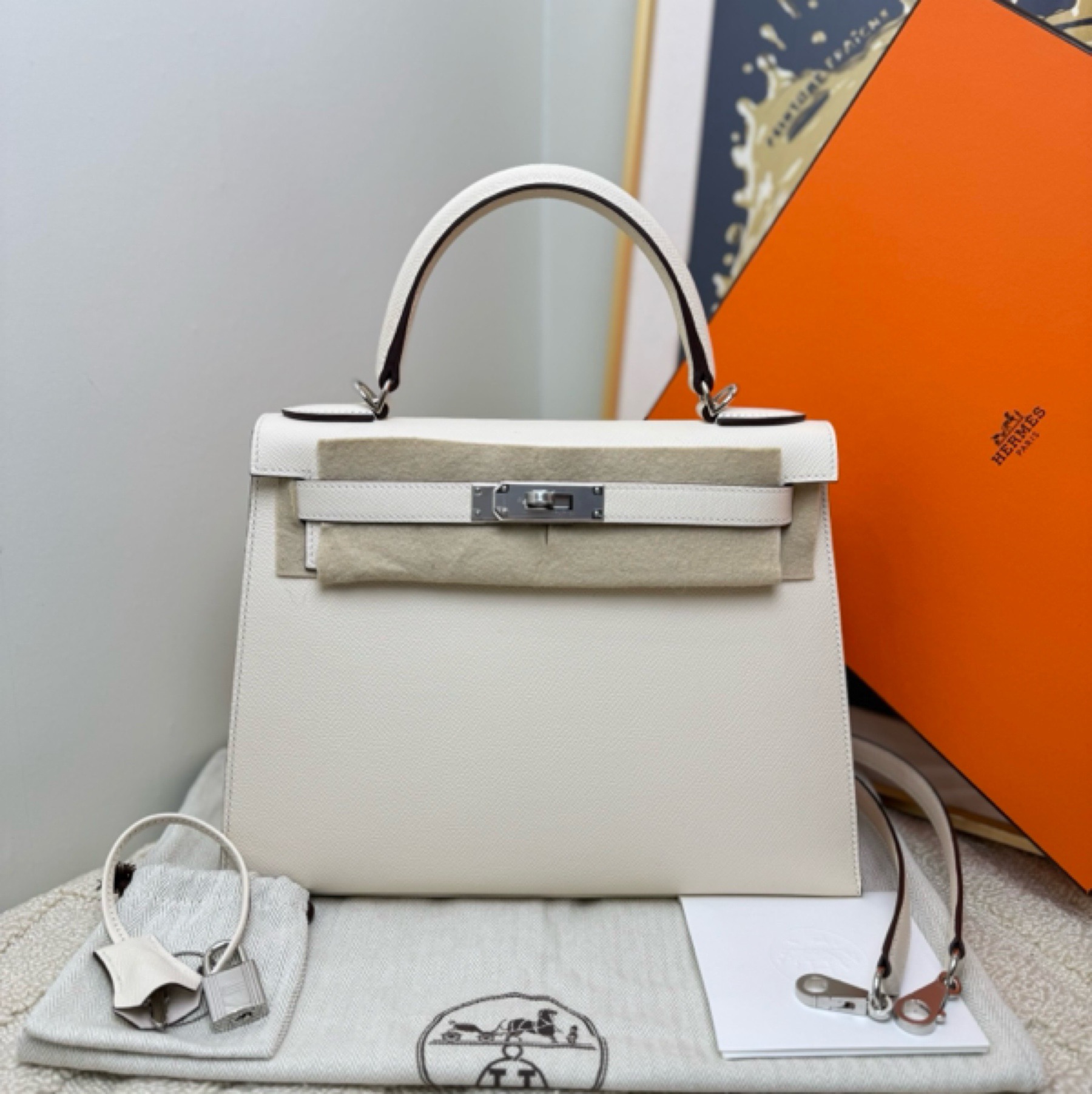 Be the first to review “Hermès Kelly 28-Elegant White/Craie”